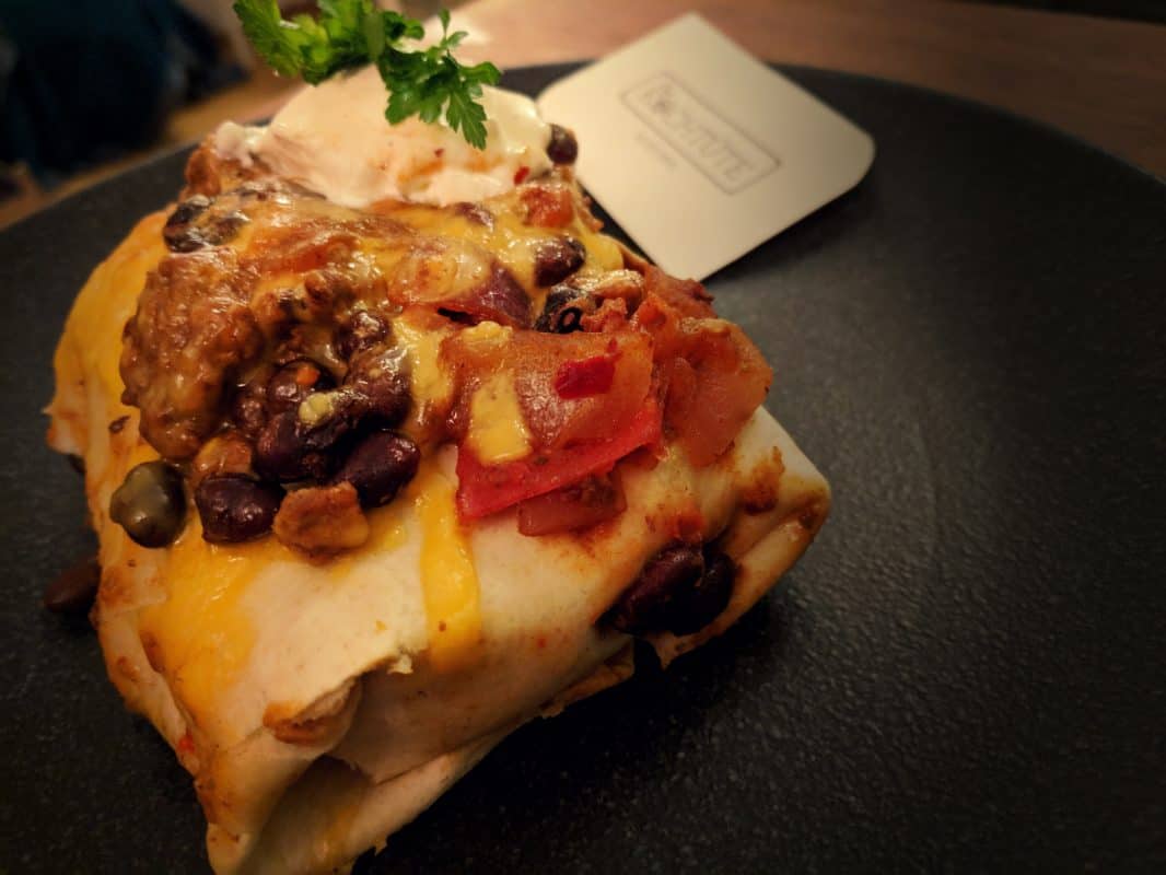 Mexican Beef Burrito mit Schwarzen Bohnen, Sour Cream und Cheddarkäse