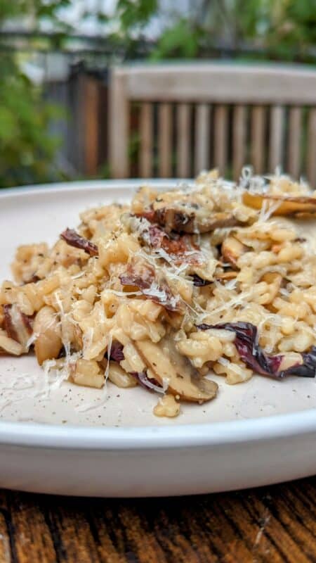 Buttrig-cremig, mit dem leichten Punch des Radiccios und dem Umami der Pilze. Hammer lecker. One-Pot-Gericht in extravagant:)