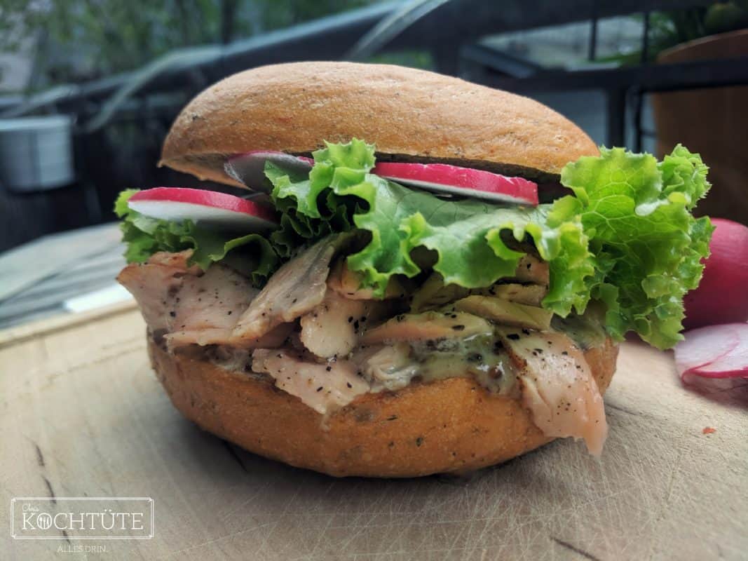 Pulled Lachs Burger mit Honig-Senf-Soße