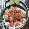 Perfekt für den schnellen Feierabend: Farfalle mit knackigen Zuckerschoten in einer cremig-frischen Ricotta-Limetten-Soße. Dazu kommt ein Topping-Deluxe mit angerösteten Pinienkernen, frischer Minze und einer Erdbeere.