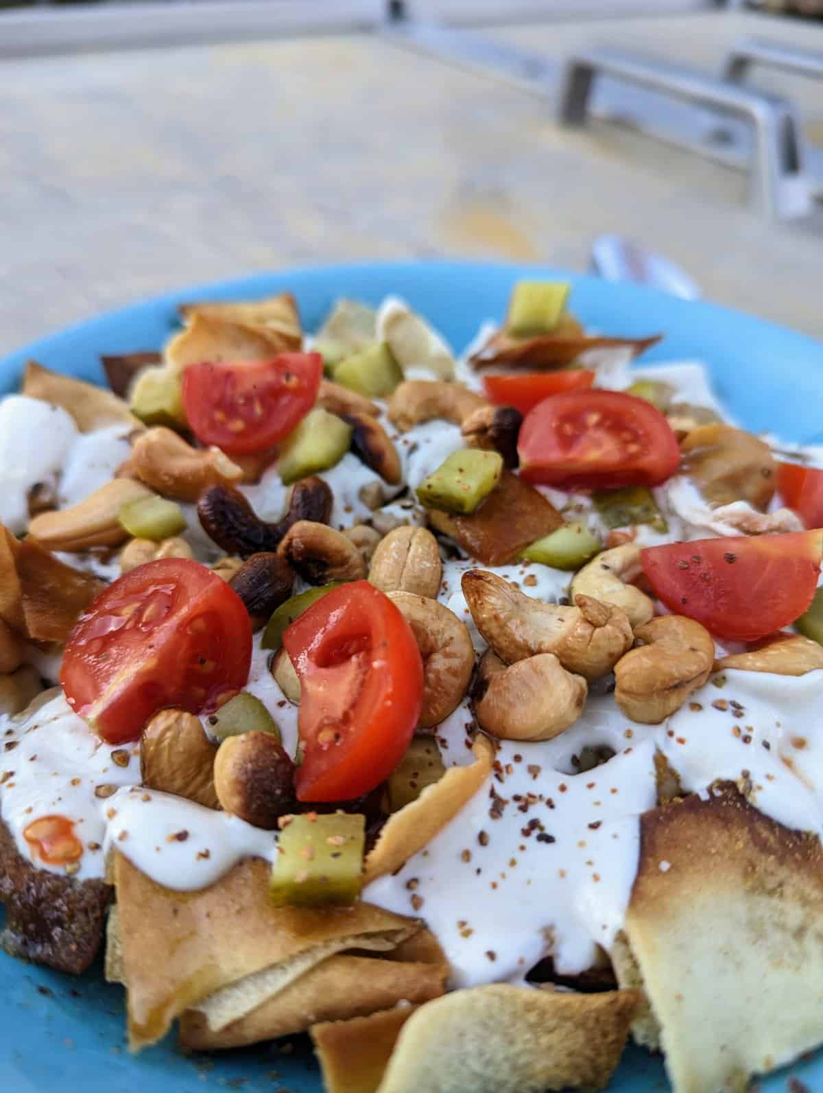 Fatteh – Kichererbsen mit Joghurt-Tahini-Soße und Arabischem Fladenbrot