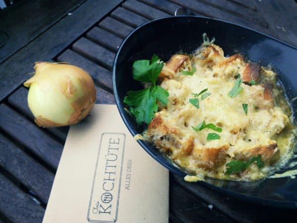Matts Französische Zwiebelsuppe mit Baguette und Gruyere überbacken
