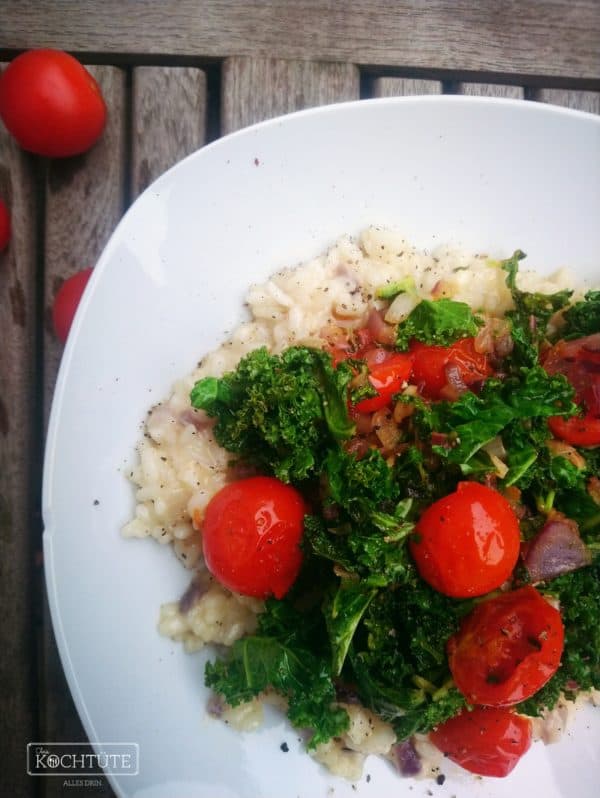 Haben diese Woche versehentlich 2 x Grünkohl-Risotto bestellt. Beim zweitenmal den Grünkohl mit kleingeschnittenem Bacon (Sus-Speck hat Edeka aus dem Sortiment genommen) und Pinienkernen statt Walnuss angebraten. Hatte etwas mehr Wumms