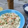 Ich habe noch nie Hühnerfrikassee selbst gemacht. Das ist eine tolle „Tüte“, um einfach an dieses Rezept zu kommen und es auszuprobieren. Es dauert etwas länger als alle anderen Kochtütengerichte, aber es lohnt sich und einfach ist es obendrein auch noch. :) Keine aufwändigen Gewürze oder ähnliches, 2 Töpfe und eine Pfanne.