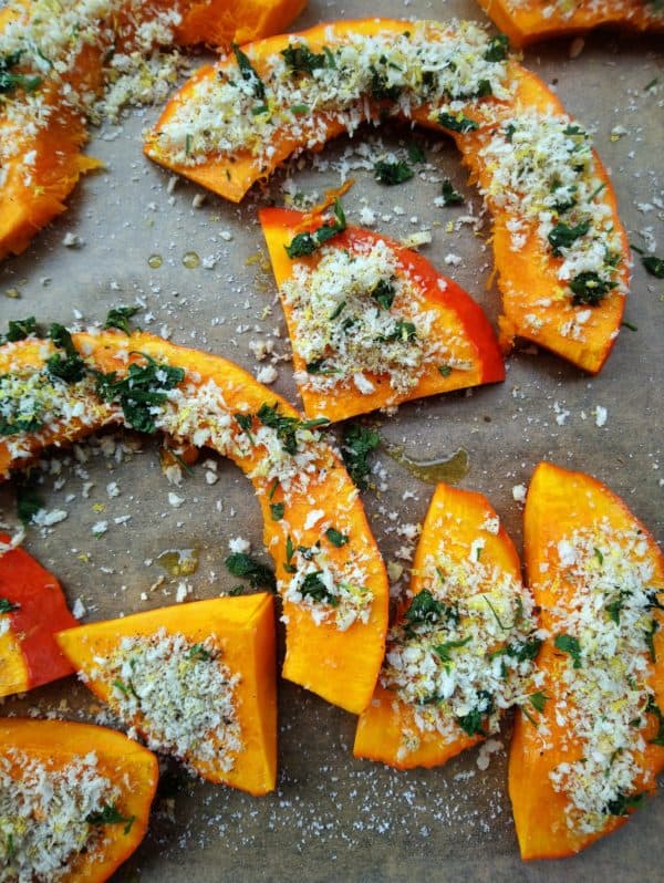 Mittlerweile ist ja Hummus in aller Munde – zu Recht wie wir finden. Kichererbsen mit Sesampaste, Zitrone und Knoblauch. Ein Sattmacher mit ganz viel Proteinen und so schon sau lecker. Dazu kommt aber noch frisches Fladenbrot und im Ofen gebackener Hokkaido-Kürbis mit einer Kruste aus Pankobröseln, Ras el Hanout-Gewürz, Petersilie und Rosa Pfeffer. Eine perfekte Kombination.