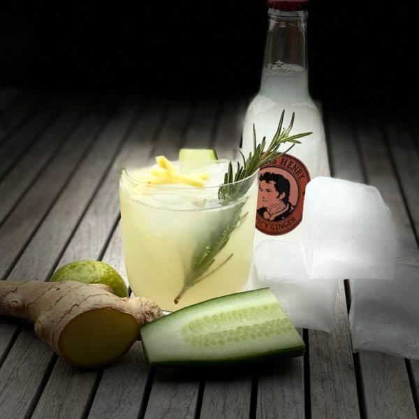 Ein Klassiker aus den 40er Jahren in den USA, der lange Zeit vergessen wurde und jetzt zu Recht eine Renaissance erlebt: Der Moscow Mule. Erfrischend-scharfes Ginger Beer, klarer Wodka und süßlich-scharfer Limettensaft. In unserer Variante kommen noch frischer Ingwer, ein Rosmarinzweig und ein paar Gurkenscheiben dazu. Einfach weil’s geiler aussieht. Und besser schmeckt. Hammer Getränk.