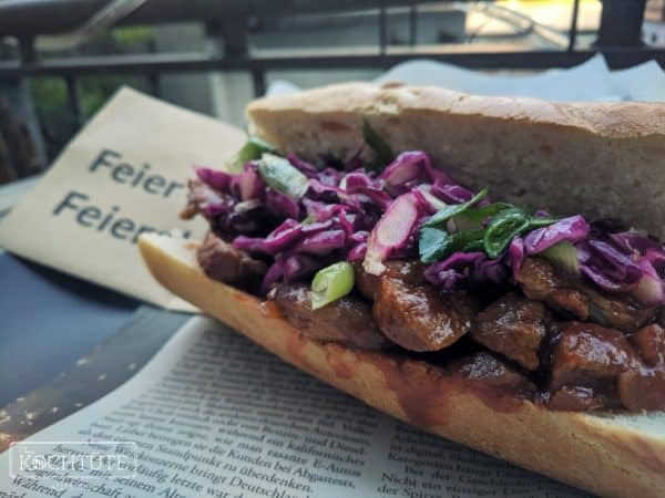 Whoop Whoop. Saftiges Pulled Pork vom Schleswig-Holsteinischen Susländer Schwein in einer samtig-rauchigen BBQ-Soße im weichen Weizen-Baguette. Dazu etwas knackiger Rotkohl-Cole-Slaw für den Crunch. Bestes Feierabend-Sandwich. Promise.