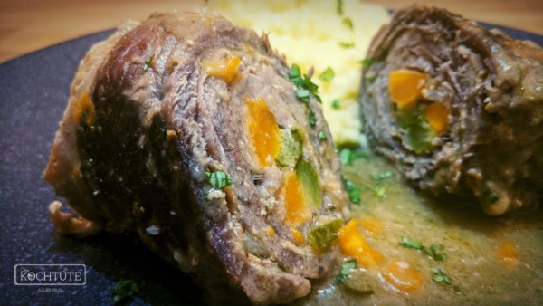 Mamas Rinderroulade mit Kartoffelbrei und karamellisierten Möhrchen