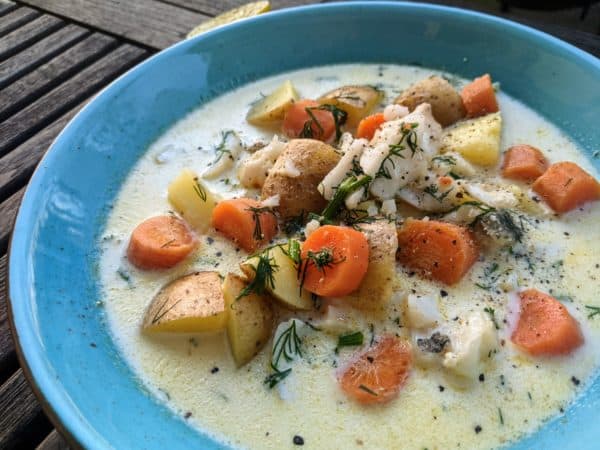 Schwedischer Fischeintopf mit Rotbarsch, Sahne und frischem Dill