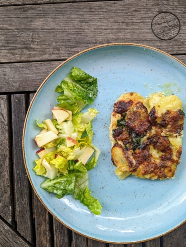 Spinat-Kartoffelgratin mit Bergkäse überbacken
